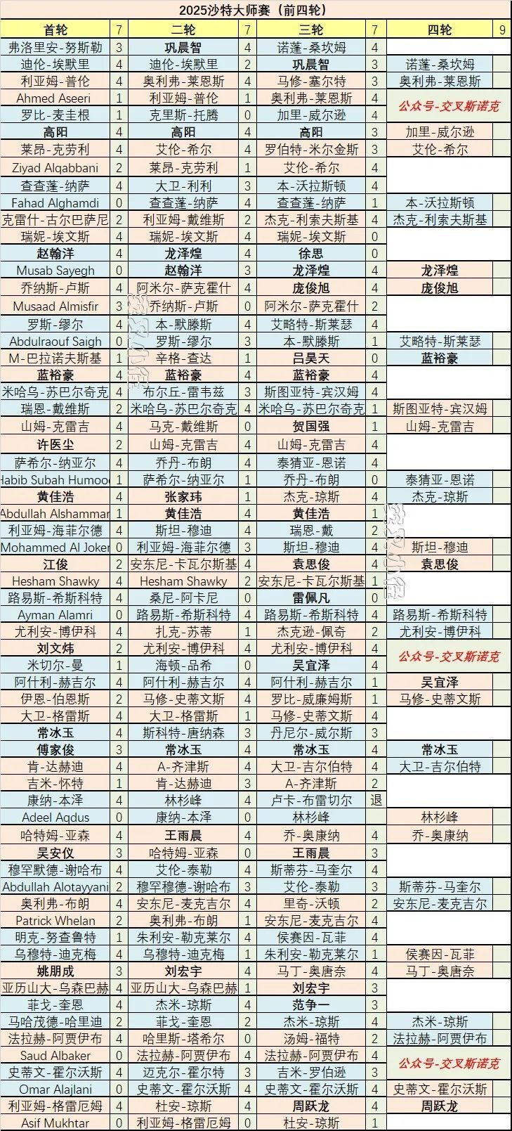 至此,第三轮结束,中国7人晋级第四轮,晋级球员包括:吴宜泽、庞俊旭、袁思俊、周跃龙、龙泽煌、常冰玉和蓝裕豪。